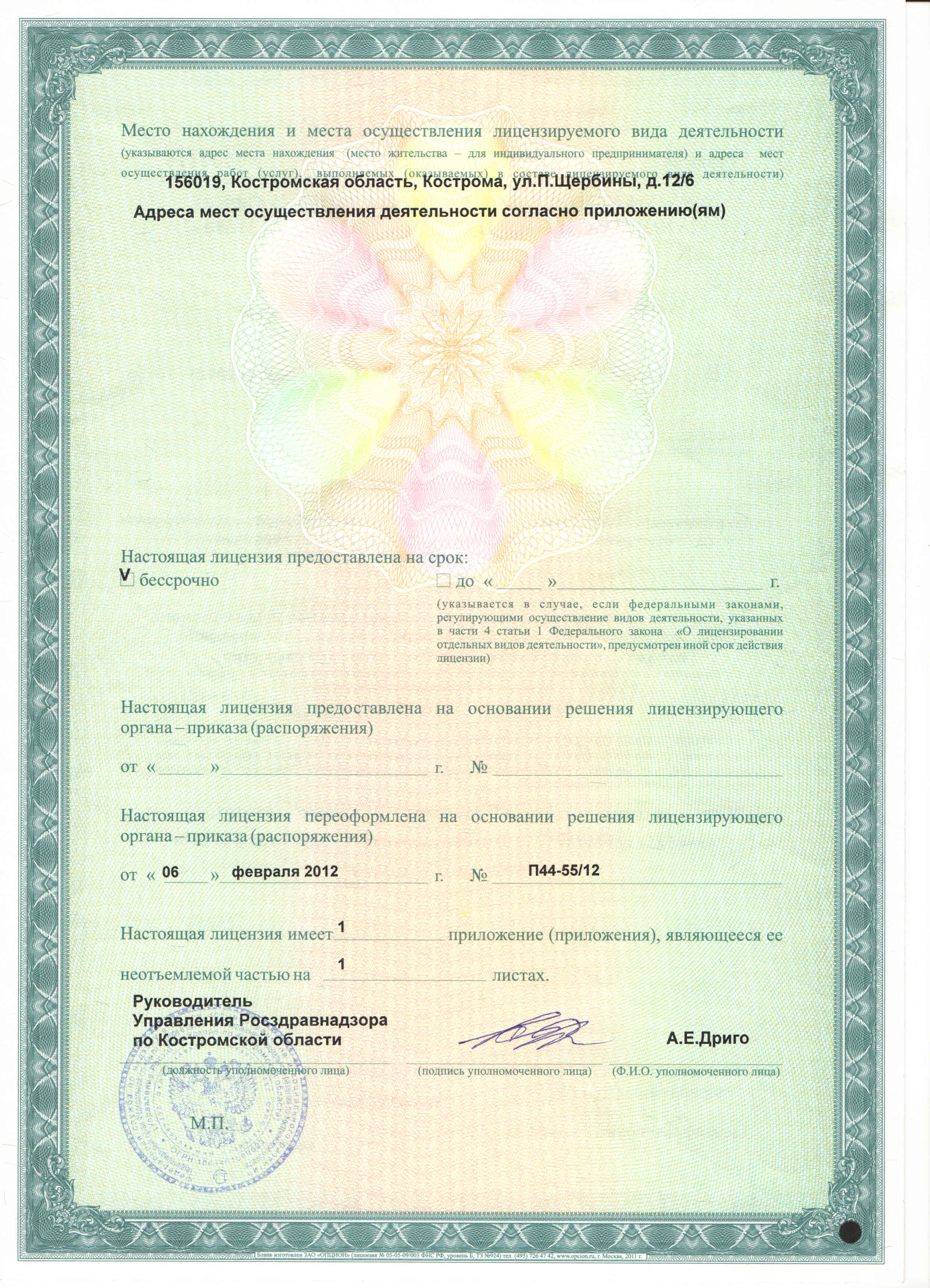 Медицинская лицензия 1 Скачать>>
